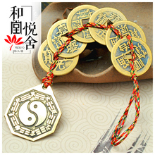 开光纯铜五帝钱六帝钱挂件清代古币铜钱挂件风水摆件八卦镜铜铃铛