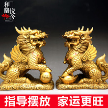 开光纯铜麒麟工艺品一对招财纳福送子镇宅家居客厅工艺摆件装饰品