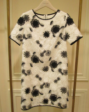 欧洲站2017夏季韩版领口手工钉珠女装宽松显瘦名媛气质连衣裙女潮