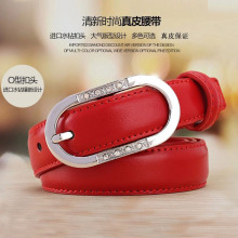 新品女士针扣头皮带韩版纯牛皮水钻细款腰带宽光面休闲百搭牛仔裤