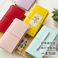 韩国活页夹手帐创意文具笔记本记事本子厚复古日记薄A6带金属笔