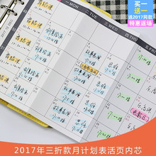 韩国文具A5/A6 2017计划日程6孔活页手账本替芯三折款内芯笔记本