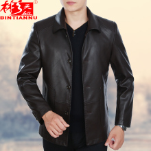 中年皮衣秋冬款男装 中老年皮衣男士翻领纽扣休闲夹克 爸爸装外套
