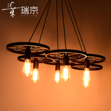 loft创意个性复古工业风灯具客厅餐厅酒吧台美式乡村铁艺车轮吊灯