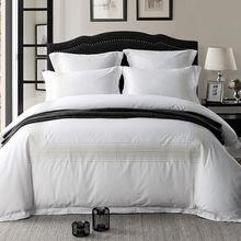 雪仑尔五星级酒店贡缎绣花四件套纯棉1.8m床双人简约纯色全棉套件
