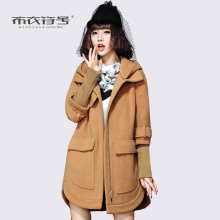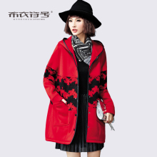 2016秋冬新款女韩版胖MM加大连帽毛织拼接加厚外套中长款宽松女装
