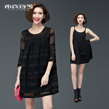 布衣符号2016新款大码女装宽松春夏季胖mm雪纺连衣裙中长款两件套
