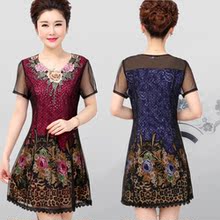 中老年女装连衣裙宽松短袖中长款40-50岁夏装打底衫妈妈装蕾丝裙