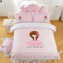 韩版公主风床裙式蕾丝花边四件套韩式粉色女孩儿童卡通1.5/1.8m床
