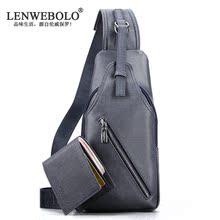 伦威保罗 真皮休闲套装!男士胸包休闲潮流背包 牛皮斜跨单肩包