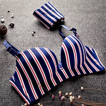 条纹性感小胸内衣女性感聚拢调整型胸罩少女无痕无钢圈文胸套装