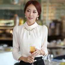 白色衬衫女高领长袖韩范 2016秋装新款女装寸衫 蕾丝女士立领衬衣