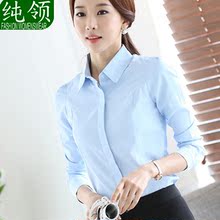 加绒加厚白衬衫女长袖秋季修身显瘦翻领职业装工作服工装正装衬衣
