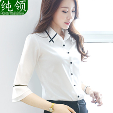 白衬衫女短袖职业装夏季七分袖女雪纺衫喇叭袖衬衣修身中袖衬衫女