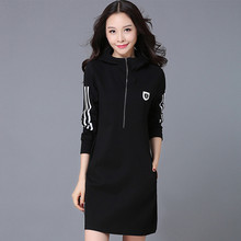 大码女装2016胖妹妹秋冬季新款韩版宽松连帽卫衣裙胖mm长袖连衣裙