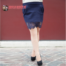 胖mml显瘦蕾丝拼接半身裙大码包臀裙菱格夹棉短裙39140821