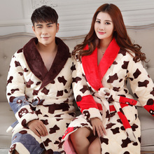 冬季情侣加厚法兰绒夹棉浴袍加肥珊瑚绒男女士保暖家居服睡衣睡袍