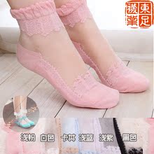 包邮春夏季蕾丝花边个性糖果色超薄百搭船袜短袜子女流行潮款丝袜