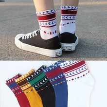 全棉日系袜子女 韩国复古小条纹中短筒纯棉袜 百搭森女运动袜包邮