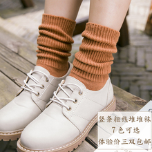 秋冬保暖日系纯棉堆堆袜女森系复古粗线中高筒袜韩国毛线长袜靴袜
