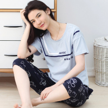 婉若秋水夏季新款睡衣女纯棉短袖五分裤女睡衣夏天全棉家居服套装