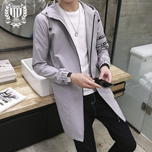 MTS2017春季潮男士中长款修身风衣 青年韩版休闲连帽披风薄款外套