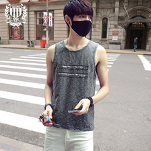 2017夏季潮男士无袖宽松背心 青年印花运动韩版打底汗衫休闲背心