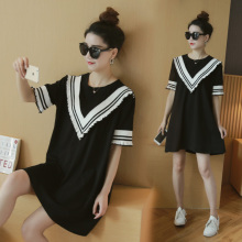 夏韩版系带中长款宽松短袖t恤纯棉学生下摆荷叶边连衣裙女大码潮