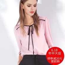 系带五分袖粉色雪纺衫时尚气质衬衫百搭上衣女2017春夏装新款