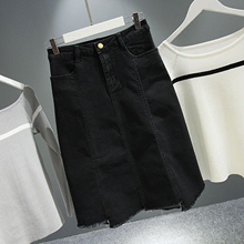 2017新款春季韩国黑色不规则下摆高腰弹力半身裙A字裙牛仔长裙女