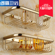 全铜欧式浴室置物架挂件 金色仿古卫生间收纳架双层网篮卫浴壁挂