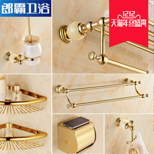 欧式全铜浴巾架卫生间挂件套装浴室置物架卫浴五金玉石金色毛巾架