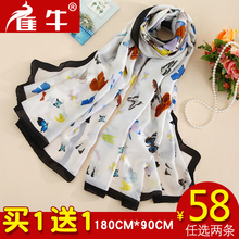 雀牛缎面蝴蝶真丝丝巾女春季百搭2017新款桑蚕丝长款夏季女围巾