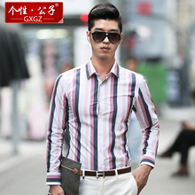 春季竖条纹衬衫男长袖韩版修身商务大码衬衣青年薄款休闲打底衬衣