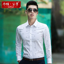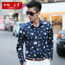 个性·公子春季男士长袖衬衫印花男青年花衬衣韩版修身夜店寸衫男