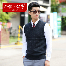 个性公子冬季100%纯羊毛衫马甲加厚毛衣V领坎肩男士套头羊毛背心