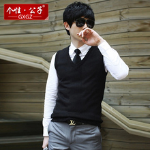个性·公子马甲V领背心男士纯羊毛衣韩版修身无袖针织开衫外套