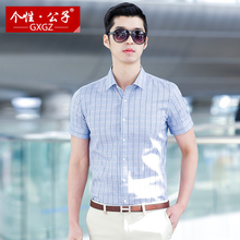 春秋季男士短袖衬衫棉青年商务修身型格子休闲衬衣男竖条纹寸衣服