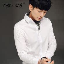 个性·公子白衬衫男长袖修身韩版休闲春款寸衫青年商务长袖衬衣男