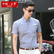 个性·公子夏季新款男士短袖衬衫韩版修身小星星衬衣休闲寸衫男装
