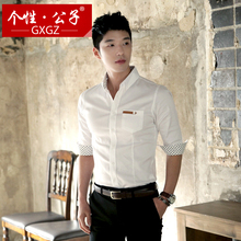 个性·公子韩版修身男士七分袖衬衫牛津纺中袖白衬衫休闲短袖衬衣
