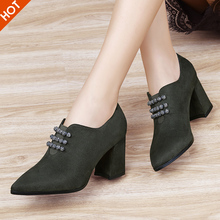 高跟鞋女鞋子秋冬季2016新款粗跟中跟韩版潮百搭蕾丝尖头单鞋皮鞋