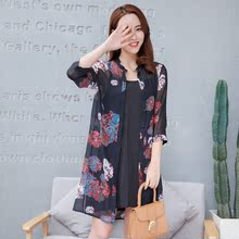 2017夏季新款女装上衣门襟扣全身菊花雪纺开衫韩版宽松遮阳防晒衣