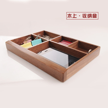 木质办公收纳盒印鉴章盒桌面手机收纳盒夹子收纳文具黑胡桃