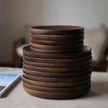 黑胡桃圆形点心碟 日式木盘 零食水果盘 早餐木碟 出口碟