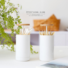 日式高档创意棉签盒 生活家用木制盖ABS塑料按压自动便携式棉签筒