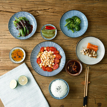 日式简约石纹雪花釉面餐具和风陶瓷盘子饭碗汤碗勺子日式餐具