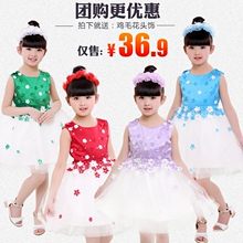 新款儿童六一表演服女孩亮片蓬蓬纱裙演出服无袖舞蹈合唱服公主裙