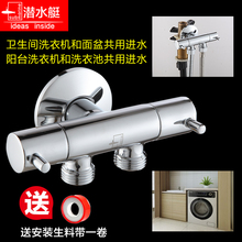 潜水艇全铜一进二出双控双出水多功能马桶洗衣机三通三角阀一分二