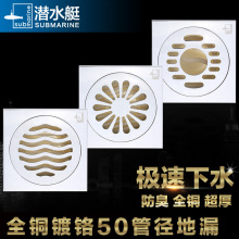 正品潜水艇地漏全铜防臭洗衣机阳台卫生间干湿区通用地漏TF50-10E